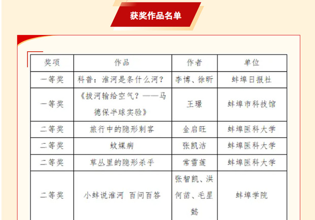 近日,“千万IP创科普”蚌埠科普短视频大赛评选结果揭晓,由我校师生团队创作的动画微课短视频《小蚌说淮河百问百答》荣获大赛二等奖。该作品由张智凯、洪何苗、毛星懿策划制作,以原创IP形象“小蚌”为主讲人,其设计融合贝壳、珍珠等淮河流域特色文化元素,生动展现地方文化魅力与科普创新力。为贯彻落实全省前沿科技科普行动计划,充分展示蚌埠市科学创新能力与新质生产力发展成果,蚌埠市科学技术协会于2025年7月至9月主办了“...