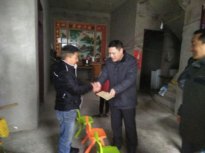 1月30日,2019年春节前夕,校长丁明一行3人,副校长郭有强一行4人冒着雨雪分赴我校定点帮扶村涡阳县城西街道史寨村和蒙城县楚村镇富达新村,开展精准帮扶工作调研和春节走访慰问活动。