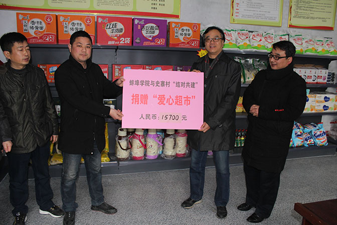 校长丁明代表学校向“城乡结对共建”单位史寨村 “爱心超市”捐赠人民币15700元。
