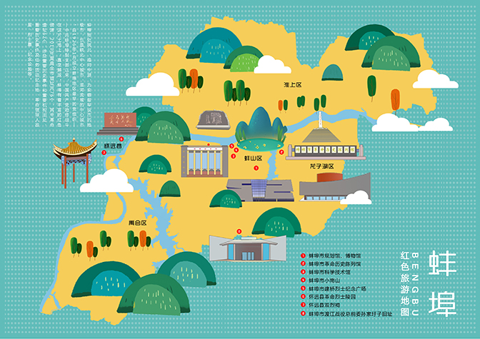 红色文创系列作品中包含蚌埠手绘红色旅游地图、办公用品系列、创意文件收纳座、USB充电台灯、“渡江战役总前委孙家圩子旧址书立”、铜制书签等10余件红色文创产品。