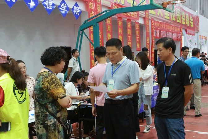 在迎新工作中,各单位、各部门密切配合,保证高效率完成任务。我校在火车站、高铁南站、长途汽车站设立接站点,新生出站后立即就有志愿者帮助搬运行李并引导乘坐校车直接到校。同时,在图书馆广场设有临时停车场,送新生的车辆在保卫处的指挥下有序停放,停车场出口各学院均安排志愿者迎接。集中办理报到手续的时候,为培养新生的独立性,今年新生依旧被要求独自进入体育馆办理。另外,学校在各学院设立“绿色通道”,帮助家庭困难学生和其他同学一样顺利入学。