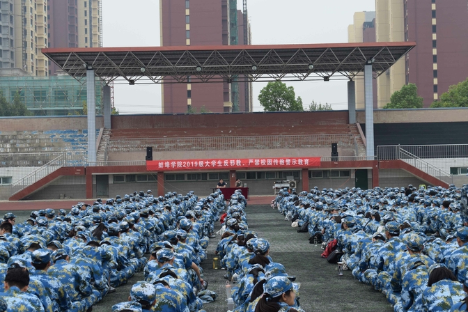 为加强大学生反邪教育和防范非法传教渗透,9月17日上午,学校特邀蚌埠市政法委防邪办副主任王善国为2019级全体新生进行反邪教、严禁校园传教警示教育,武装部副部长陈重主持教育活动。