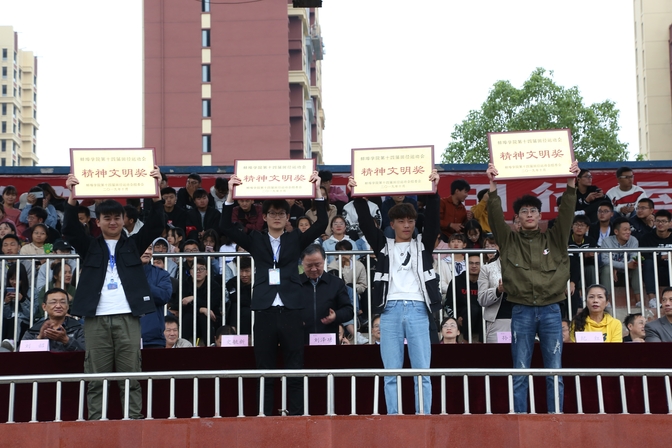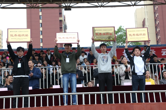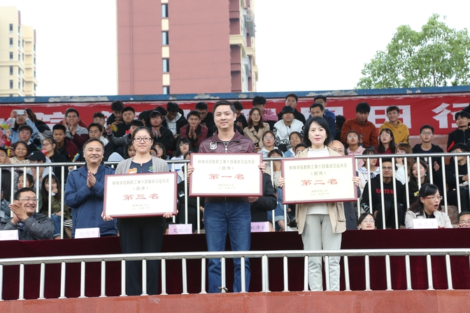 本届运动会总裁判长纪红宣布比赛成绩。获得学生组团体总分前六名的分别是:材料与化学工程学院、机械与车辆工程学院、土木与水利水电工程学院、经济与管理学院、理学院和计算机工程学院。获得学生组年级前三名的分别是:材料与化学工程学院一年级、三年级(并列第一名),材料与化学工程学院二年级。教职工团体总分前三名分别是:经济与管理学院分会、机关二分会和材料与化学工程学院分会。理学院、经济与管理学院、艺术设计学院和文学与教育学院荣获优秀组织奖。电子与电气工程学院、食品与生物工程学院、计算机工程学院和外国语学院荣获精神文明奖。