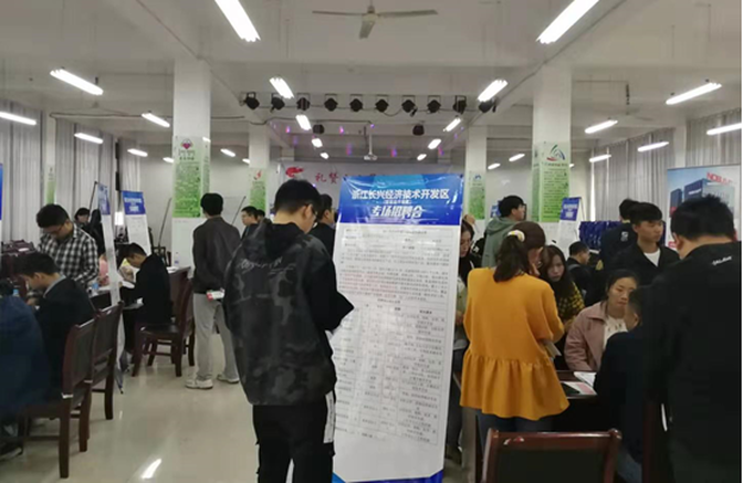 10月30日上午,由长兴县人社局、长兴经开区管委会组织的14家本地优势企业来到我校进行2020届毕业生选聘,本次企业涵盖装备制造、生物科技、电子电气、精密制造、生活用品等行业,带来了96个岗位,总计349招聘名额。