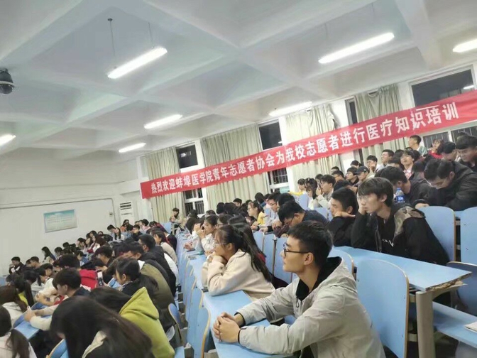 为加强蚌埠学院青年志愿者们的自我安全意识,提高志愿活动中对安全问题的应急处理能力。2019年11月10日晚上19点,由校团委主办,蚌埠学院青年志愿者联合会承办的急救知识培训大会在阶梯教室一举行。培训工作由蚌埠医学院医学专业志愿者完成。校青志联及各二级学院青协共一百余人参加。