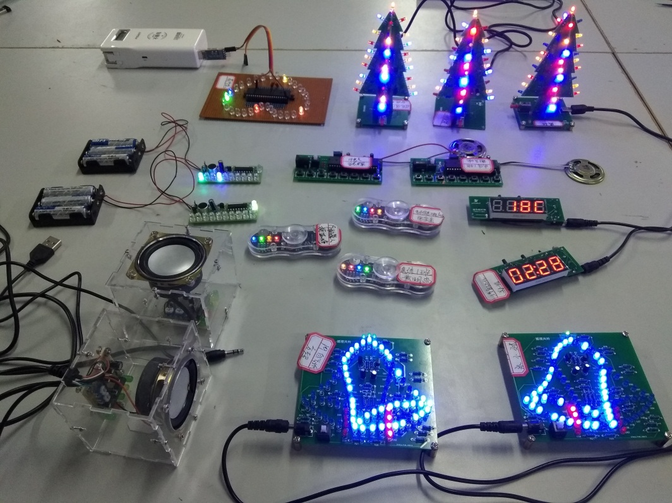 为增加竞赛趣味性,竞赛初级组设有圣诞树、指尖陀螺、摇摆风铃等七个项目,比赛时,学生随机抽取,限时完成。高级组为自由创意,实现流水灯不同闪烁效果。本着公平公正的原则,结合项目的难易程度、焊接质量、运行效果、完成时间等,最终评选出获奖作品。
