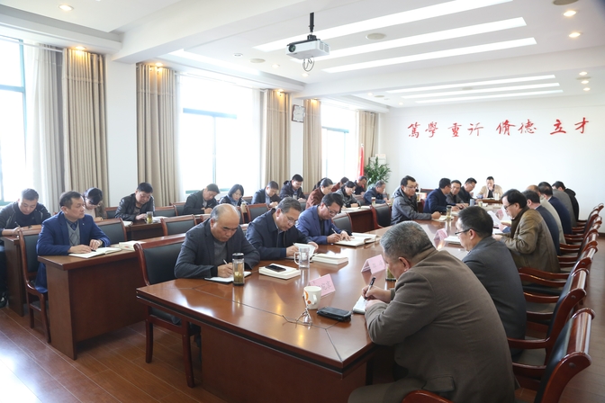 11月15日下午,蚌埠学院在行政楼第二会议室开展“不忘初心、牢记使命”主题教育“推进高水平大学建设”专题集中学习研讨。党委书记刘泽功主持学习研讨会。学校党政领导班子成员、机关处级干部参加学习研讨会。