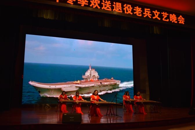 11月29日下午,音乐与舞蹈学院汤虹、唐辰,武装部宋长玉3位老师带领40余名学生赴空军飞训基地四团,为部队官兵献上了一场精彩的文艺演出。演出内容丰富、形式多样,女生小合唱《祖国万岁》、古筝合奏《我和我的祖国》、啦啦操《青春飞扬》、男生四重唱《啊!朋友再见》、锣鼓表演《踏上新征程》、戏剧联唱《中国大地》等节目精彩纷呈,不断将现场气氛推向一个又一个高潮。整场演出洋溢着浓郁的军民鱼水情,展现了我校新时代大学生精湛的艺术水准和良好的精神面貌,官兵们用热烈的掌声表达了对我校师生的感谢,演出受到了部队官兵的一致好评。