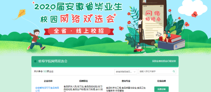 除了专场招聘会,学校就业指导中心与第三方人力资源平台新安人才网合作,举办网络双选会活动,广大用人单位积极报名,经过学校审核总计322家企业获得入驻资格,发布职位信息1682条,总计需求人数近10000人次。学校毕业生在平台投递简历后,如获得用人单位青睐,用人单位即可通过平台“视频面试”功能与学生第一时间进行沟通。