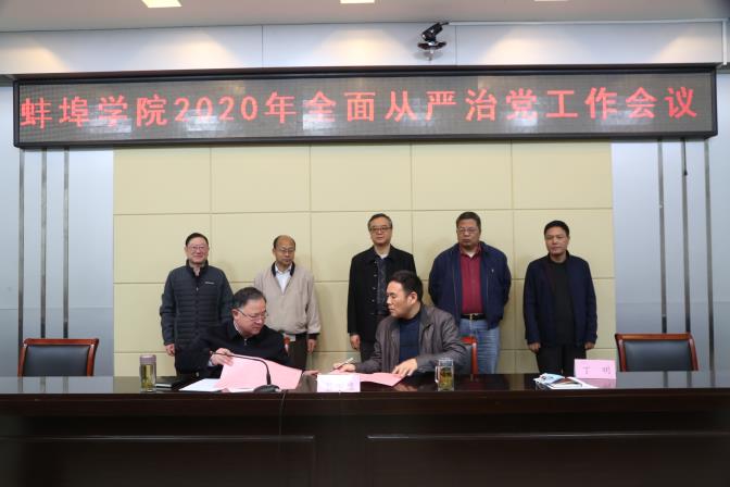 会上,还举行了《2020年落实全面从严治党主体责任责任书》、《蚌埠学院2020年意识形态工作责任书》、《蚌埠学院2020年安全稳定工作目标责任书》三项责任书签订仪式。(撰稿:王璇;编审:黄灿)