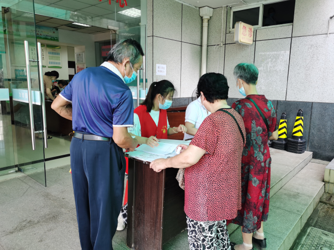 团支部成员正在家乡疫苗接种点为居民登记信息