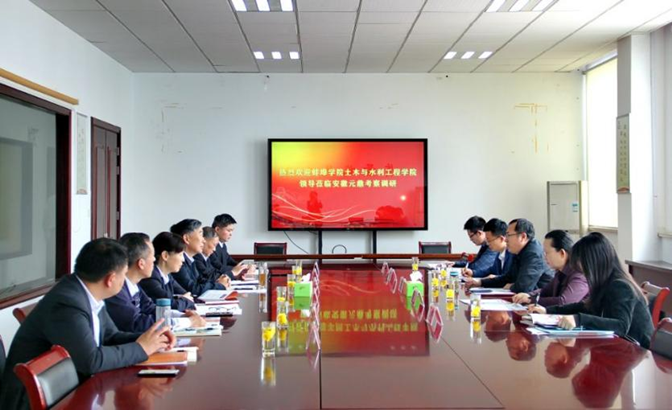 在安徽元鼎建设工程有限责任公司,学院一行观看了企业成立十五周年宣传片,公司董事长叶士平先对公司发展历史、业务范围、社会服务等情况进行了详细介绍,并回顾了多年来校企双方卓有成效的合作。学院院长戚晓明对前期的校企合作给予充分肯定,并就进一步开展校企合作提出希望。双方在人才培养、技术研发与项目合作等方面深入交换了意见,并达成进一步合作意向.