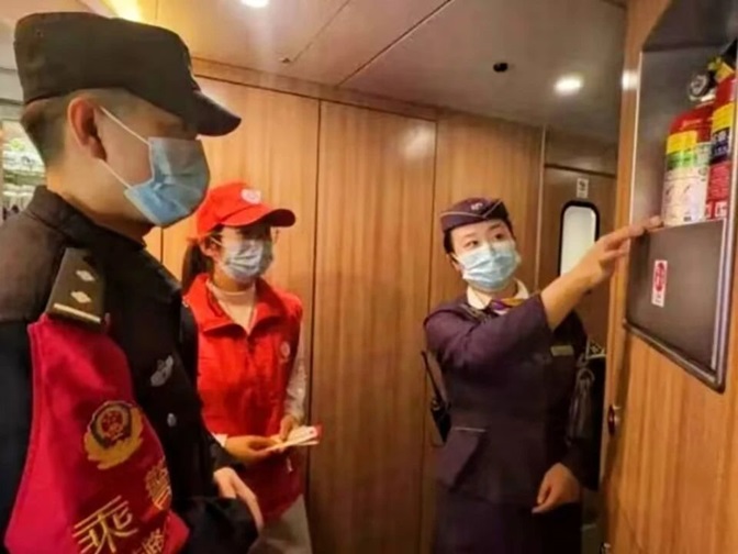 乘警代表燕政翰认为,高铁是我们国家的金名片,近期,来自蚌埠学院的大学生平安列车志愿者们和乘警一起开展为民服务、安全宣传、对车厢内不文明乘车行为进行劝导,及时发现劝阻了许多矛盾纠纷苗头,提升了广大旅客群众的乘车体验。