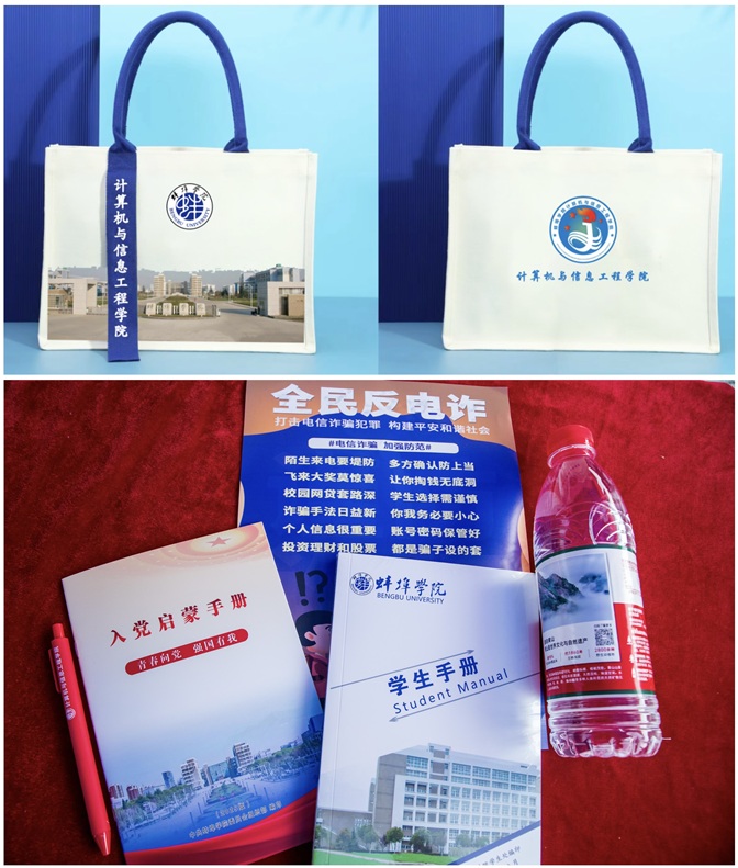 迎新现场,学院团委别出心裁,为全体新生准备了“新生大礼包”——带有学校和学院标识的手提袋、《学生手册》、反诈小秘籍、精心设计的签字笔以及入党启蒙材料等。“新生大礼包”承载着学院对新生的殷切期望与美好祝福,为新生入学拉满仪式感。