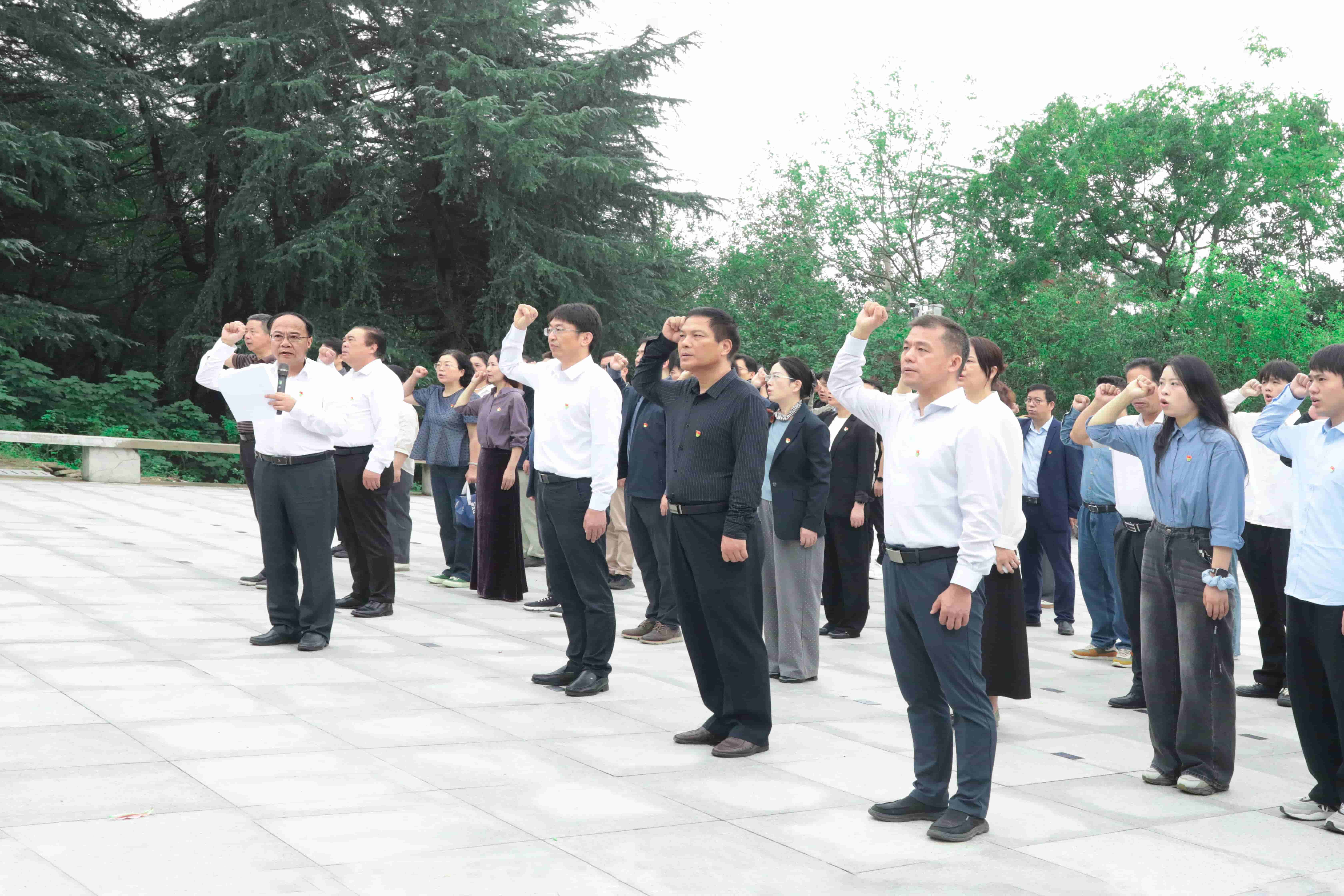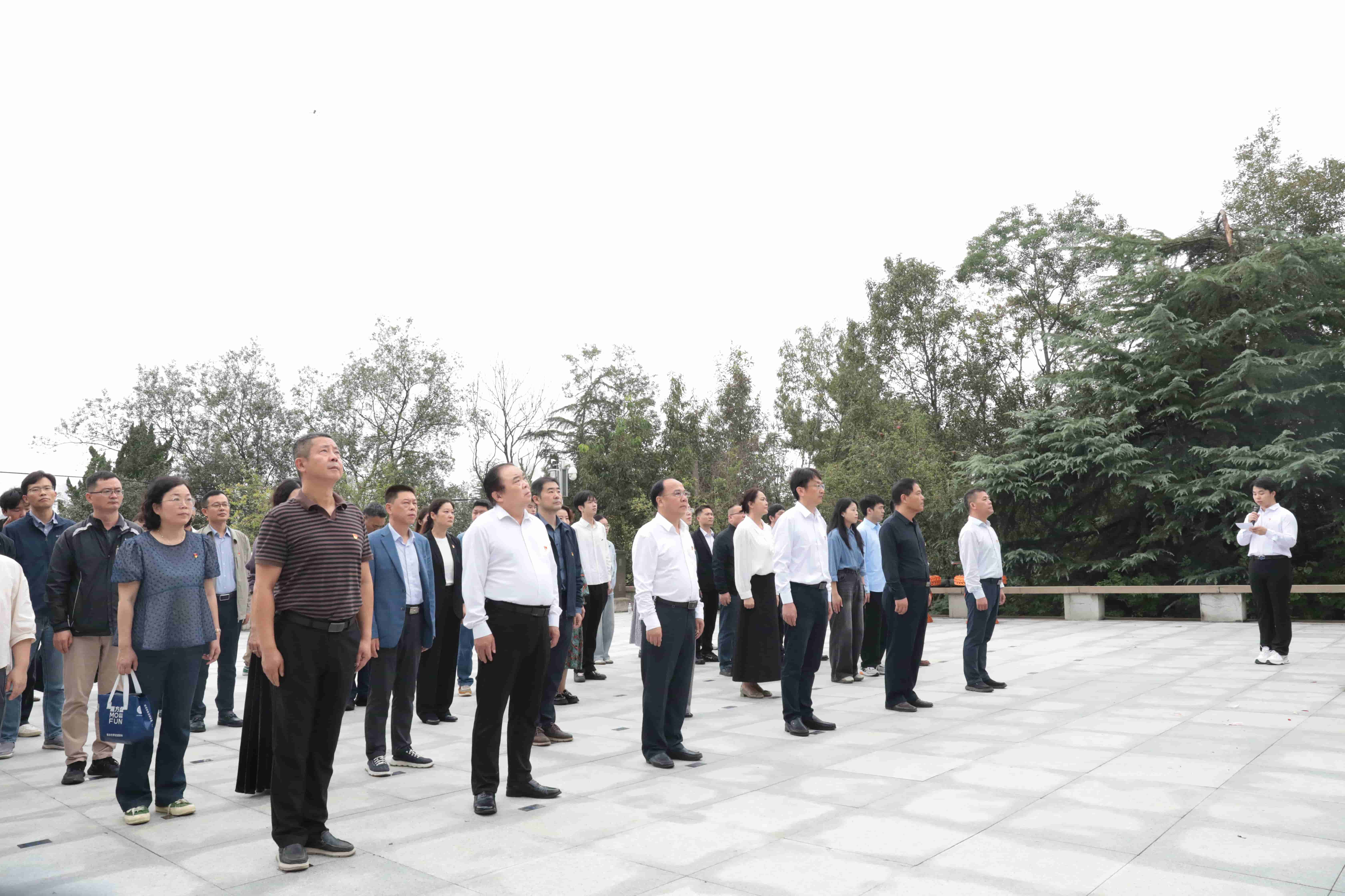 全体人员整齐列队在烈士纪念碑前,齐唱中华人民共和国国歌,歌声雄壮激昂。国歌唱毕,全体肃立,向革命烈士默哀,深切寄托哀思。