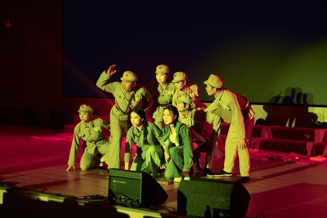 演出在热烈的氛围中拉开帷幕,节目形式丰富多样,内容深刻动人。情景朗诵《烽火家书》、《渡江第一船》带领观众重温峥嵘岁月,感受革命先辈的家国情怀;戏剧小品《开花》、《守岛英雄》以生动的演绎彰显新时代青年的责任与担当;电影配音《父母之河》、《哪吒》选段巧妙传递中华优秀传统文化薪火;《关于昨天的意见》、《倾听绿水青山的诉说》则以艺术形式呼应绿色发展理念,引发师生共鸣。最后,大合唱《复兴颂》、《歌唱祖国》以激昂的旋律、饱满的情感,表达对祖国繁荣昌盛的美好祝愿,将现场气氛推向高潮。