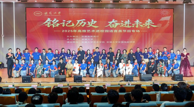为进一步丰富校园文化生活,提升师生审美素养,9月28日下午,由安徽省教育厅主办、安徽大学承办的2025年高雅艺术进校园活动首场演出在我校图书馆学术报告厅隆重举行。安徽大学艺术学院、安徽戏剧学院师生带来的十余个精彩节目,为我校师生呈现了一场兼具思想性与艺术性的视听盛宴。