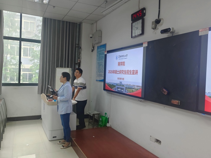 宣讲会上,张雪梅一行介绍了阜阳师范大学商学院硕士点的总体布局、学术型硕士学位点的建设情况、人才培养成效、考试科目设置,以及会计专业硕士点的发展成果与考试内容,并详细解读了奖助学金政策体系。同时,结合历年招生与录取数据,为同学们深入剖析了招考趋势,提出了科学有效的备考建议。整场宣讲内容详实、信息丰富,紧扣学生实际需求,具有很强的针对性。与会同学纷纷表示,通过此次宣讲,他们对研究生招生政策、本学科硕士研究生招生主要特点和和培养模式有了更加全面的了解,进一步明确了考研目标与复习方向,收获颇丰。