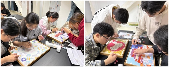 在数字油画DIY这一核心环节中,工作人员有序分发绘制工具并讲解填色技巧,伴随着昂扬的爱国旋律与优美民族音乐,同学们执笔绘心,自由创作。现场气氛温馨而专注,大家不时交流绘制心得、互帮互助,在色彩交汇中深化情感共鸣。