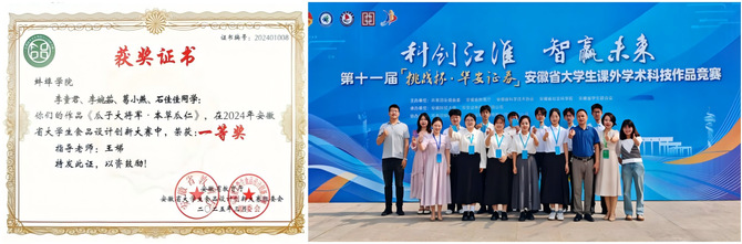 学院重视实践育人工作。创新创业教育纳入人才培养方案,实行双创导师计划,双创教育全覆盖。近三年,学生参加国家级大学生创新创业训练计划项目41项、省级40项,参加各类学科和技能竞赛获省级一等奖5项、二等奖7项、三等奖29项,以学生为第一作者公开发表学术论文23篇。近三年,大学生暑期“三下乡”社会实践活动成绩卓然,获省级重点团队、专项团队立项3个,省优秀调查报告1篇,蚌埠市社会实践评比一等奖1项,蚌埠学院一等奖团队5个,连续5年获得校级优秀组织奖。“虾蟹共生,游鱼逐梦”社会实践团获全国大学生“三下乡”社会实践活动优秀团队。