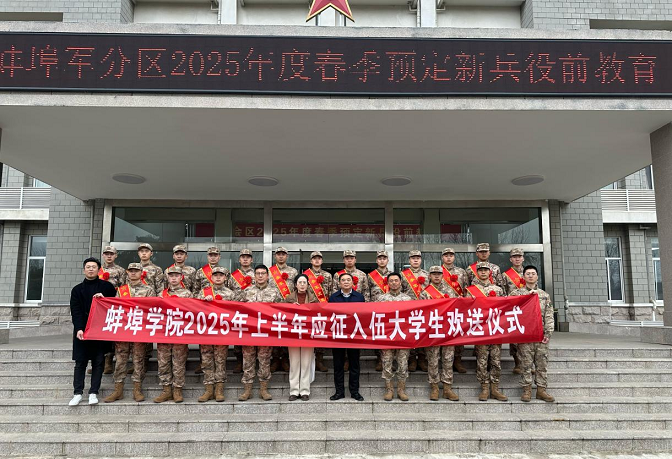 蚌埠学院深入学习贯彻习近平强军思想,将大学生征兵工作作为重大政治任务,把落实立德树人根本任务与建设世界一流军队、实现强军目标紧密结合,切实抓紧抓实抓牢。2025年,学校在市军分区的指导下,多措并举,精准发力,高标准高质量完成了全年度征兵工作,共有101名优秀学生应征入伍,其中毕业生92人,超额完成年度征兵工作任务,为强军兴军事业注入青春力量。