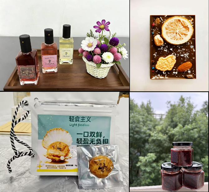 比赛顺序通过抽签决定,两个类别的比赛同时进行。比赛过程中,各团队代表通过精心准备的PPT汇报和实物展示,全面呈现了他们的创新成果。汇报内容深入阐述了产品的研发背景、原料创新、工艺流程及市场前景等关键信息。评委们针对每个项目进行了细致专业的点评与打分,在肯定同学们创意和实践能力的同时,也为作品的进一步完善提出了宝贵建议,为各团队后续备战更高级别赛事指明了方向。
