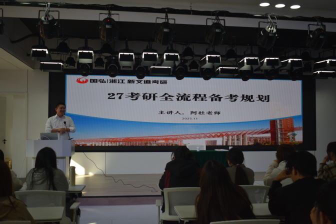 夏春晓首先致欢迎辞。接着杜长富直奔主题:梳理了当下大学生普遍面临的“就业还是考研”“跨专业是否可行”等迷茫问题,并以比亚迪校招薪资、杭州教育局教师招聘硕士占比超77%等真实数据,直观展现学历对就业竞争力、薪资水平的关键影响,强调考研在职业发展中的重要价值。讲座中,杜长富详细梳理了考研全流程关键时间节点,从报名到初试,再到成绩公布、国家线发布,以及复试调剂这一完整时间轴,并详解初试与复试的考查重点。针对公共课复习,他给出具体建议:政治需掌握1273个核心知识点,聚焦马原理等重点模块;英语需攻克5500大纲词汇与96种长难句,强化阅读与写作能力。随后,杜长富向同学们区分了学术型硕士和专业型硕士的概念,讲述了二者之间的区别。针对学生最关心的“如何择校择专业”,杜长富提出“漏斗式选择法”:先定专业(决定工作方向)、再选地区(锁定发展生态圈)、最后择院校(匹配“敲门砖”含金量)。他详细解读了我国14大学科门类的分类逻辑,将专业划分为基础理论类、能力类、技术类,并给出跨专业考研建议——优先“平层跨考”,降低备考难度。最后,杜长富提出“考研100%成功五大环节”——科学计划、优质资料、精品课程、定时测试、及时答疑,鼓励学生打破“信息差”,避免“盲目备考”,通过精准定位与系统复习实现“一战成硕”。