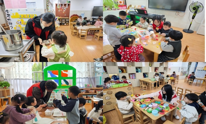 与此同时,在新天地幼儿园,志愿者们则更多扮演“生活助手”与“玩伴”的角色。在小班,他们耐心帮助小朋友穿戴,用温柔的态度与小朋友们聊天互动;在大班,志愿者们积极参与小朋友们的画画、跳绳等活动,在欢笑中建立起深厚情谊。