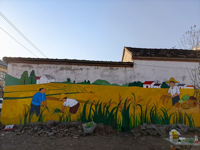 艺术设计学院党委与代李村党支部签订了党建共建协议。随行的25名学生志愿者为代李村村民休闲广场绘制了两幅墙绘,得到了村民的一致好评。(撰稿:黄栋栋;编辑:毛星懿;审核:杨安升、黄灿)