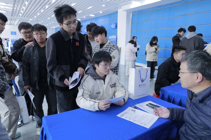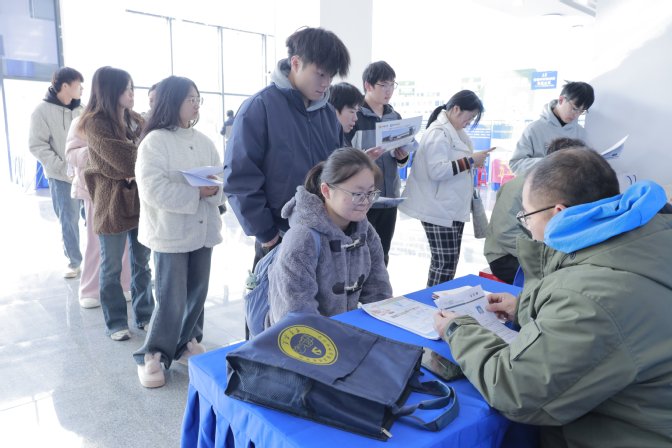 初冬的招聘大厅里,暖气蒸腾着年轻的气息。毕业生们身着正装、手持简历穿梭于各个招聘展位之间。部分企业展位前,蜿蜒的队伍已排至大厅拐角,后排学生踮脚张望着招聘海报。招聘代表耐心解答毕业生提问,有的甚至现场开启了面试。本次招聘会邀请到凯盛科技、三星树脂、中光电科技等蚌埠地区代表性企业,围绕新材料产业,每家企业结合学校毕业生特点精心筛选岗位,主要涉及机械、电气、材化、食品等学院专业,同时兼顾经管、文教、外语等学院专业。据统计,本次招聘会用人单位共计收到简历388份。(撰稿:赵冠军;编辑:马小皊、毛星懿;审核:赵思莉、黄灿)