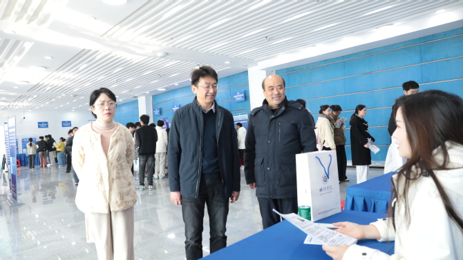 张亚新等校领导随后现场巡场,询问参会企业岗位需求、福利待遇等情况,并与在场的毕业生进行沟通,了解其求职意愿、简历投递等情况。