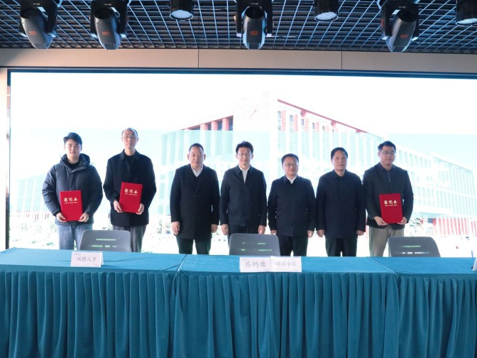 随后举行了首批“校企双聘”高层次人才签约仪式,蚌埠学院、蚌埠广鼎科技集团有限公司等两家企业、崔祥祥等5位博士现场签订了《三方协议》。