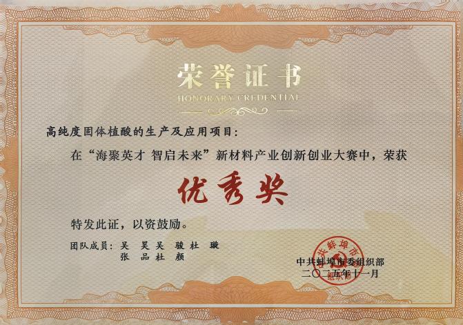 在创业组赛道,吴昊团队的“高纯度固体植酸生产及应用”项目、于晓锋和宋任远团队的“功能性新材料开发及市场化”项目均获得创业组优秀奖。两个项目在新材料生产工艺优化、市场化场景拓展等方面成果显著,展现了扎实的科研功底与较强的产业转化潜力。