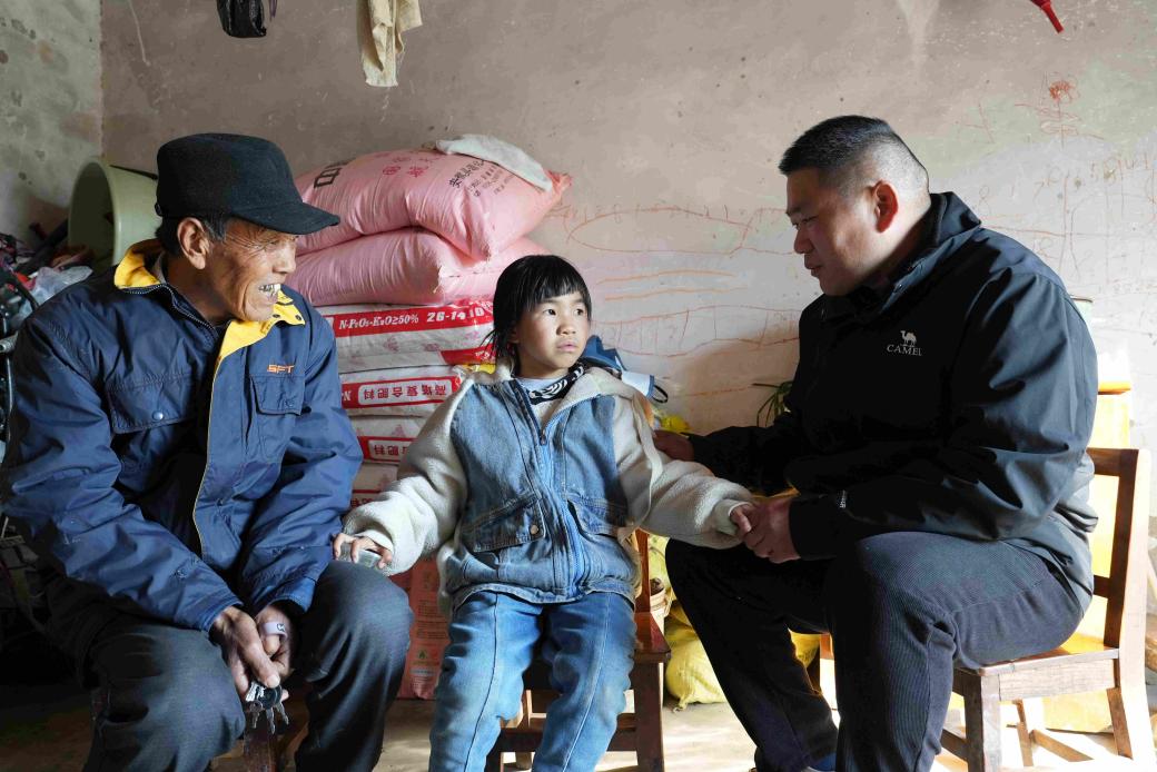 在徐梅村,还有一个特殊的小女孩让杜庆才格外牵挂。今年七岁的魏正妍刚上小学,父亲多年失联,母亲在她年仅三个月时便改嫁,从小跟着73岁的退伍老兵爷爷生活。爷爷的收入仅有一年的农作收入与国家补贴,家庭条件十分困难。杜庆才了解情况后,不仅为女孩办理了最低生活保障申请手续,缓解家庭生计压力,还格外关注女孩的成长,“最近长个了吧?天冷了,得穿厚棉衣了……”冬天未到,他已来到孩子家里问清衣服尺寸大小,考虑孩子温暖过冬的事儿。另外,在杜庆才的联系下,蚌埠学院关工委连续两年来到徐梅村,为村里的留守儿童送来书包、文具等学习用品。魏正妍也在其中。