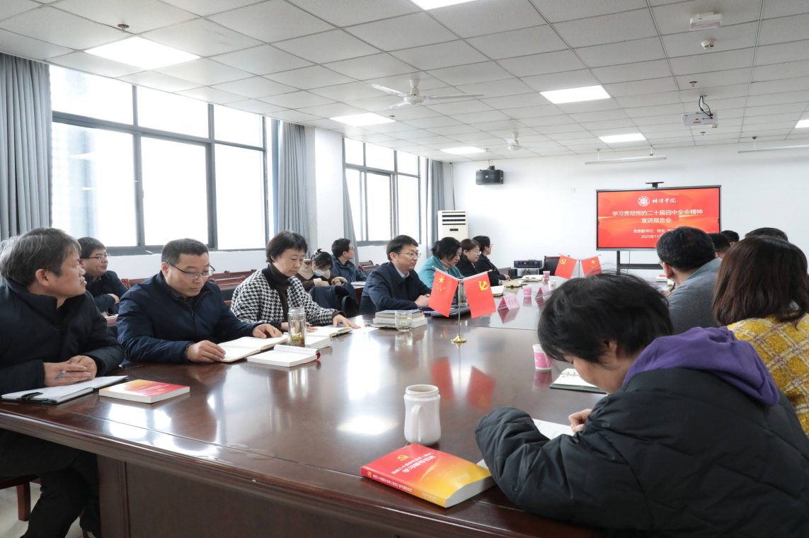 学校党委高度重视全会精神宣讲工作,坚持领导带头、以上率下,构建起“理论宣讲+调研交流”的宣讲机制,深入学习贯彻党的二十届四中全会精神。
