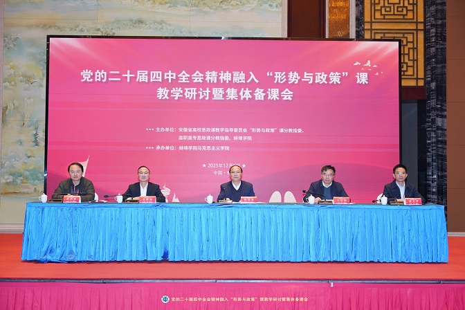 为确保党的二十届四中全会精神宣讲准确权威、生动鲜活,学校马克思主义学院牵头开展全会精神宣讲集体备课会。与会人员立足自身教学科研领域,围绕宣讲内容、方法、案例选取等核心问题深入交流,重点研讨全会精神与思政课程、课程思政的深度融合路径,结合蚌埠地方发展实际和学校办学特色增强宣讲针对性与感染力,梳理重点难点、打磨宣讲课件和教案,形成了一批兼具理论深度与实践价值的宣讲素材。学校还牵头承办全省“形势与政策”集体备课会,以“深入学习贯彻党的二十届四中全会精神,推动‘形势与政策’课高质量发展”为主题,吸引全省近百所高校的马克思主义学院负责人、“形势与政策”课教学机构负责人及骨干教师等200余人齐聚淮河之畔,共同探索课程改革创新路径。