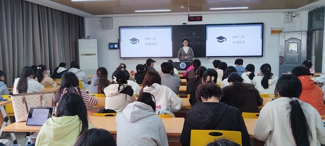 为深入贯彻落实“以赛促学、赛学相长”的实践教学理念,扎实推进《赛学训练》课程建设,4月1日下午,外国语学院在B211教室面向2024级英语专业1、2班举办“以赛促学,竞绽芳华——英语类学科竞赛全景解读”专题活动。活动由《赛学训练》课程负责人徐善文老师主讲。