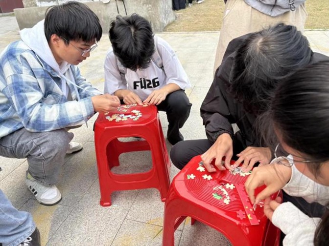 “长征精神永远在路上!”11月12日下午,在理工楼前广场一场别开生面的主题团课精彩上演。数理学院团委创新推出“传承红色基因·践行忠诚团结”沉浸式团课,用“拼图+画布+抢答”三维联动,把万里山河“搬”进课堂,让青年学子在“玩”中学、在学中悟,完成一次跨越时空的精神拉练。“拼”出史诗——碎片里的集体智慧“拼忆峥嵘·复原长征卷”环节率先点燃战火。各小队通力协作,面对印有长征经典场景的拼图碎片,队员们快速分工、默契...