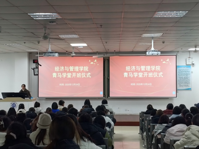 2025年12月24日中午12:30,经济与管理学院2025年“青马学堂”开班暨2024年“青马学堂”结业仪式在学院教学楼G306教室顺利举行。在简洁而庄重的开班仪式后,学院团委负责人何书贤为新一期学员讲授了开班第一课。她围绕团员“三会两制一课”教育与入党启蒙,进行了系统深入的讲解,帮助学员们进一步筑牢理想信念根基,明确新时代青年的政治责任与成长路径。何书贤在课程中激励全体学员坚定理想信念,勇担时代使命。仪式上,何书贤首...