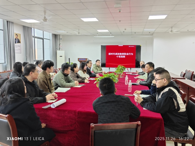 为帮助新进教师快速融入学院发展大局,明确职业成长方向,2025年11月26日下午,食品与生物工程学院在综合楼F1216召开新进教师座谈会。学院领导班子成员与全体新进教师齐聚一堂,共话教育初心,共商发展大计。纪委书记伍亚华领学了教育部关于印发的《新时代高校教师职业行为十项准则》。他强调,青年教师要坚守师德底线,严守纪律规矩,自觉践行新时代高校教师职业行为规范,树立良好的从教形象。副院长马龙结合《教育部等六部门关...