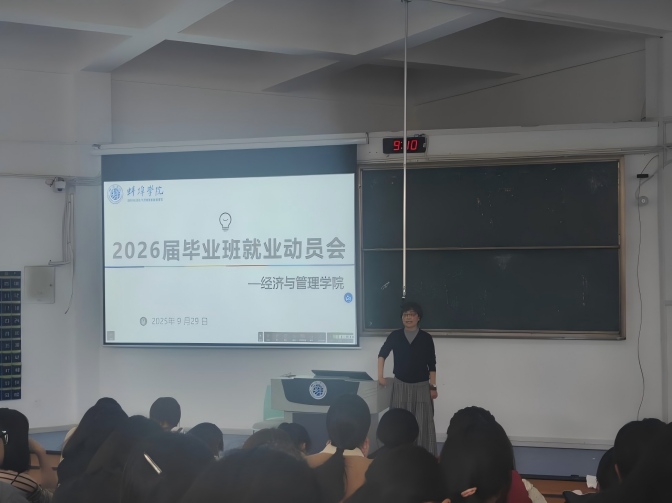 秋风送爽,硕果盈枝。为使2026届毕业生精准把握就业脉搏,明晰职业规划,经济与管理学院于9月26日、29日召开“经世致用 策马新程”2026届毕业生就业动员大会,大会由毕业班辅导员蔡德洪、何书贤主持,学院党委书记赵睿、副书记夏晓燕、毕业班辅导员及全体2026届毕业生齐聚一堂,共同吹响迈向新征程的号角。会上,蔡德洪、何书贤作为毕业班辅导员首先做就业动员,要求同学们正确认识就业形势,处理好学业与就业的关系,从认真...