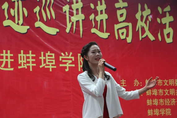 巡讲活动中,还播放了蚌埠市文明城市宣传片和“时代楷模”张劼英雄事迹宣传片。蚌埠学院和蚌埠市新城实验学校师生表演了《丝路传说》《为了谁》《竹林深处》《共和国之恋》等文艺节目。