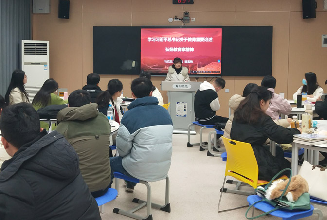 12月1日上午,为深入学习贯彻习近平总书记关于教育的重要论述,培养担当民族复兴大任的时代新人,由学校党委教师工作部负责组织,在教学楼B201教室举办新入职教师校本培训,专题学习习近平总书记关于教育的重要论述。本次讲座特邀马克思主义学院魏雪梅老师作专题报告,2023年新入职教师共计46人参加。