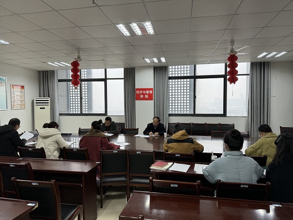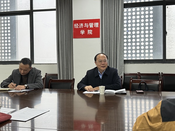 12月12日下午,校党委书记陈国龙在校党政办主任杨安升的陪同下到经济与管理学院,列席指导经济与管理学院二级中心组扩大学习研讨会,会议由学院党委书记杨晓秋主持,学院党委成员、部分支部书记代表参加会议。