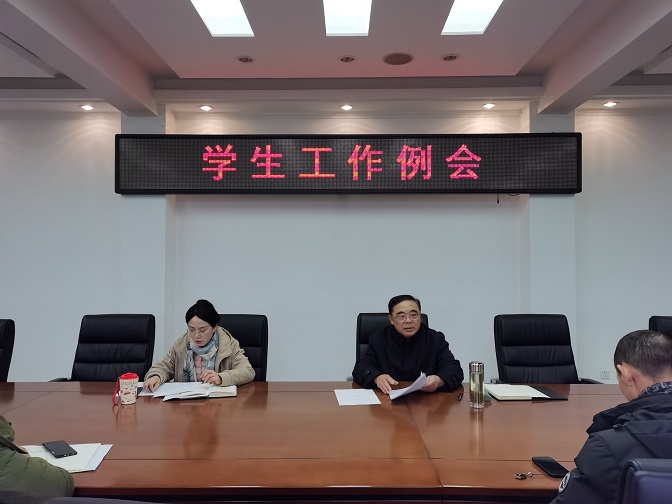 12月12日下午,我校在行政楼第二会议室召开学生工作例会。会议由学校党委副书记韦文联主持,相关职能部门负责人及各二级学院分管学生工作负责人参加会议。