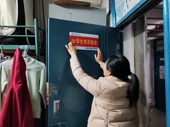 为切实增强学生党员责任感、使命感,亮身份、树旗帜、作表率,充分发挥“一名党员一面旗帜,一间宿舍一个样板”的先锋模范作用,推进美丽宿舍建设,学院开展了党员宿舍挂牌亮身份活动。学生党员宿舍标志牌以红色为底色,融入中国共产党党徽,提醒学生党员时刻牢记身份,敢于亮明身份,在学习、生活等各个方面做表率,发挥学生党员先锋模范作用,全心全意为身边同学服务。