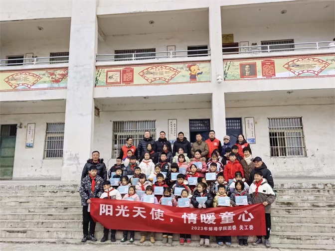 12月19日,经请示批准,校关工委、团委一行走进怀远县朱疃小学,开展“助力乡村振兴,关爱留守儿童”主题活动。
