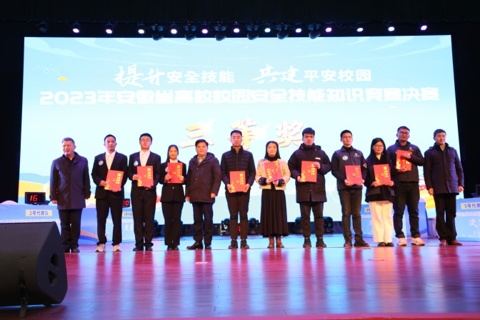 12月25日,2023年安徽省高校校园安全技能竞赛线下决赛在安徽职业技术学院落下帷幕,我校代表队不负众望,获得三等奖,学校获得优秀组织奖。