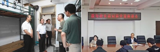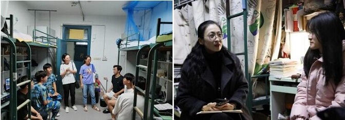 学校规范机制、创新制度,将具有不同行动逻辑和行为导向的多方主体聚合起来,探索全员育人新路径。以多元共治为导向,统筹激活各类主体资源,形成党员领导干部、专业教师、辅导员深入学生社区工作机制。学校党政领导抓准老生返校、新生入学关键期,带头走访学生宿舍,仔细察看宿舍硬件设施和环境卫生状况,认真倾听青年学子们的学习事、生活事,查看假期宿舍改造情况,并对相关问题现场进行解答。专业教师是下沉宿舍的重要育人力量,学校健全完善专业教师下沉宿舍制度机制,组织教师进驻学生宿舍开展常态化答疑,开展学习沙龙等线下活动,为学生提供课程学习辅导。建立辅导员进学生宿舍工作激励机制和考核机制,将经常性深入学生宿舍、掌握学生宿舍情况作为辅导员考核的重要内容,促进辅导员常进学生门。目前已经基本做到每月领导干部至少进宿舍1次,辅导员进宿舍3-4次,真正实现全员“参与式”协同育人。