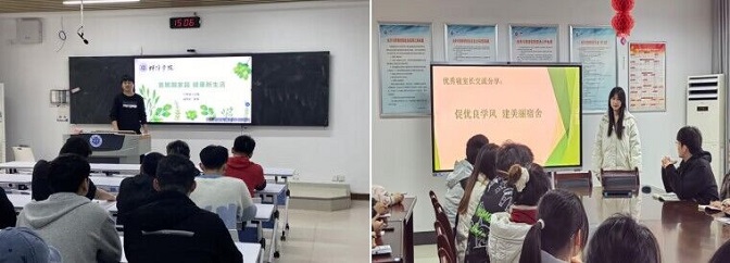 德育为先,通过辅导员例会、主题班会、团日活动、党校培训、谈心谈话等多路径宣传美丽宿舍建设,强化学生以“室”为“家”理念,通过开展先进典型示范教育和反面案例教育,帮助学生树立文明和谐宿舍理念,建设文明和谐宿舍。智育为重,开展美丽宿舍评选活动,将宿舍成员学习情况纳入考评,建设学风优良宿舍。绿色为基,通过生态文明教育主题班会、网络宣传、环保设计大赛等形式普及大学生节水节电、垃圾分类处理和投放等知识,建设绿色低碳宿舍。劳育为渠,切实做好大学生的安全教育,就宿舍防火、防盗、安全用水、用电等事项开展宣传,提高学生安全防范意识。通过每周宿舍卫生检查活动,促进宿舍内务整洁美观,增进宿舍成员之间的感情,建设安全卫生宿舍。